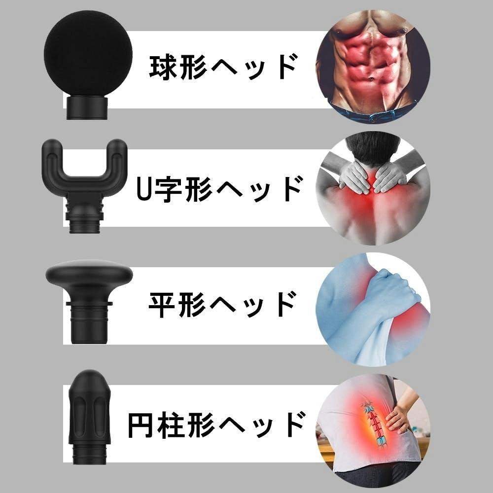 「CROSSGUN」には、体の部位に合わせた効果を発揮出来るように、4つのヘッドアタッチメントがついています。部位別に使い分けて、最適なケアをお楽しみいただけます。